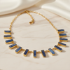 Lead/cadmium and nickel free brass base necklace with semi precious blue kianite stones in 18 carat gold plating.