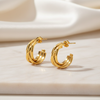 Experience the ultimate elegance and sophistication with trella half hoops, crafted with durable stainless steel and adorned with 24K gold plating for a luxurious touch.
